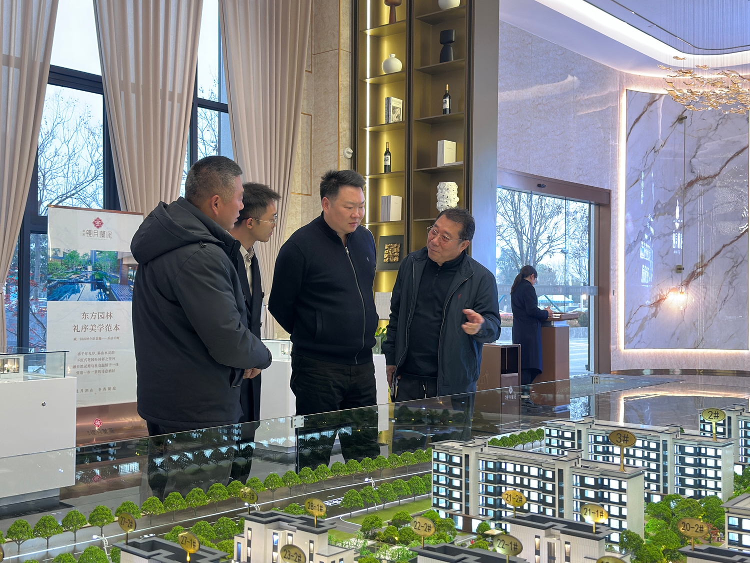 考察過程中,劉勝卿會長一行深入項目現場,實地查看了工程建設、戶型設計、園林景觀及配套設施等情況。劉勝卿會長對承天?鏡月蘭庭項目的整體規劃與品質打造給予了充分肯定,認為項目充分結合了鐘祥本地的文化底蘊與改善性居住需求,展現出了良好的發展前景與市場競爭力。