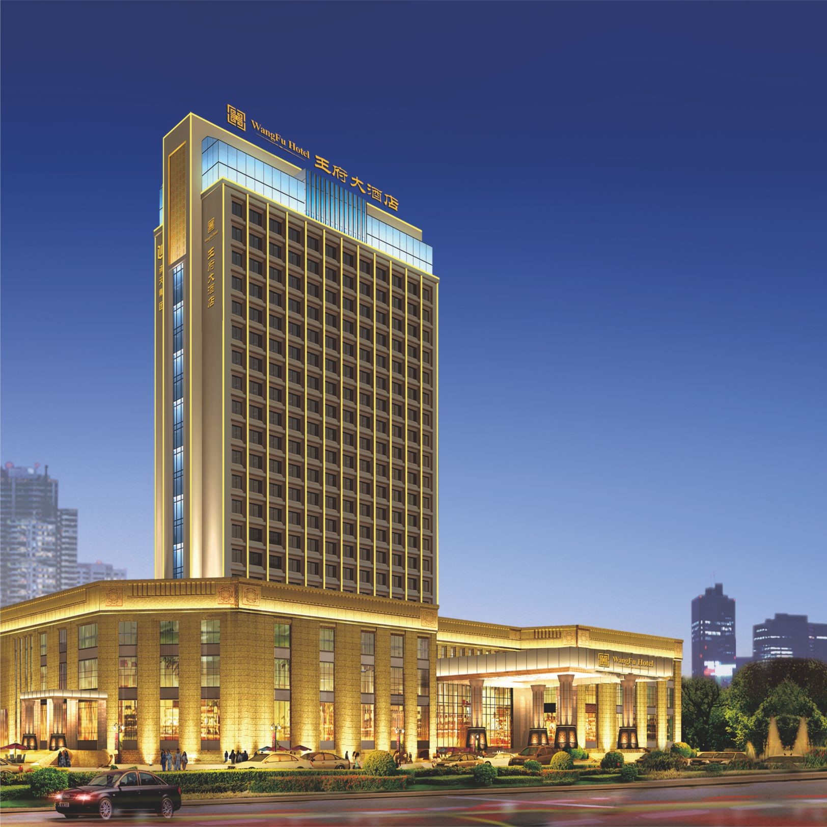功能布局:配備1000+停車位(含新能源充電樁)、王府精品超市、商務中心及婚慶中心,形成一站式服務生態圈。